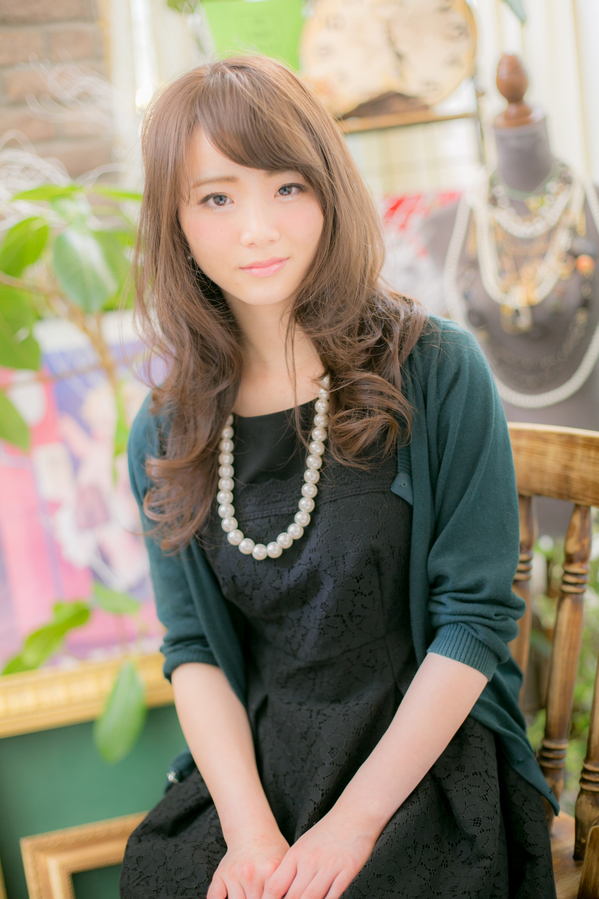襟足とバックを外ハネに巻いて、他は内巻きにコテで巻き、簡単スタイリング。