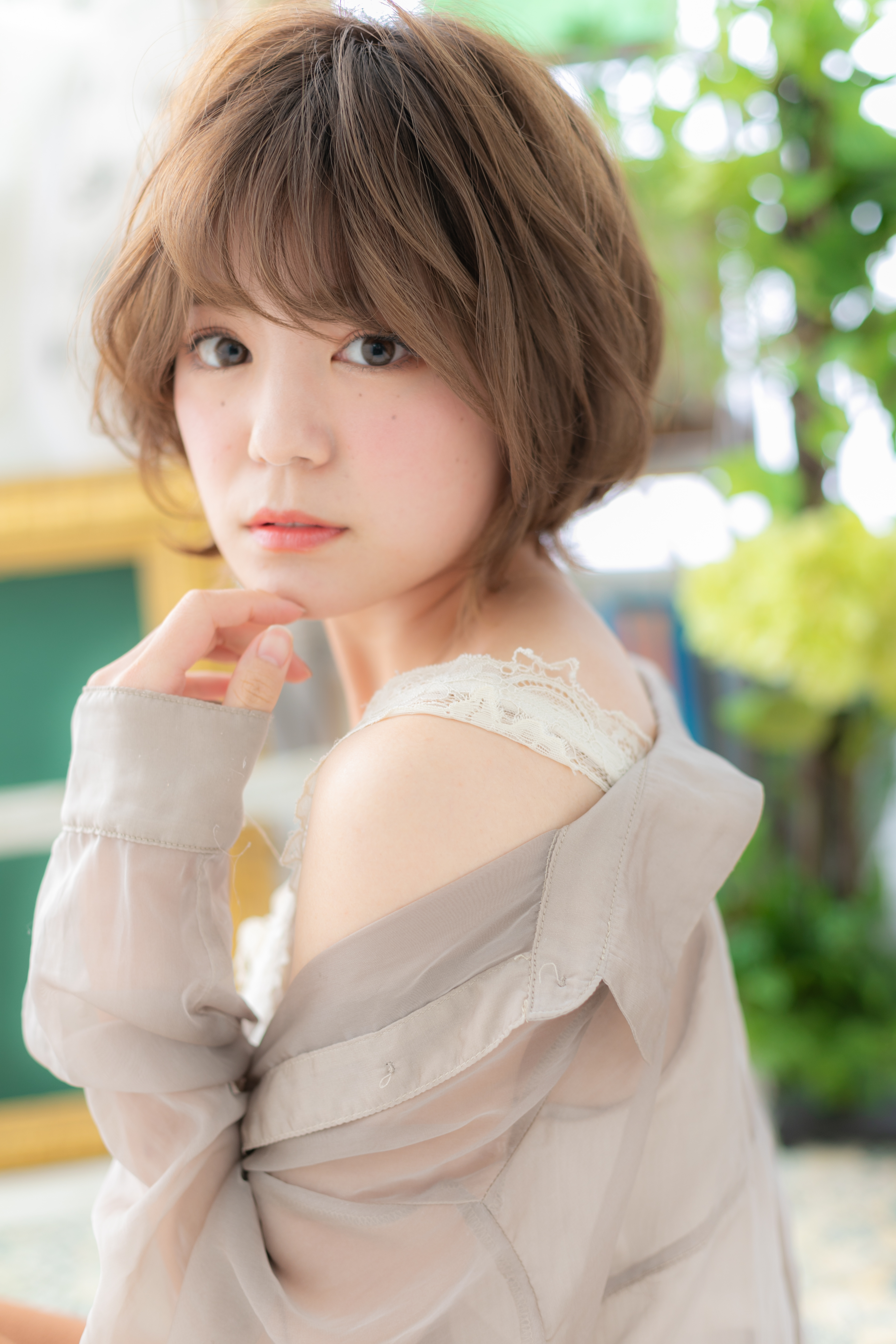 斜めバングで目力UPくせ毛風ラフふわミディ