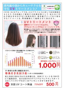 僕がおススメさせて頂きたいのは紫外線から髪を守ってくれる(UVトリートメントです)