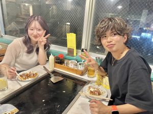 鉄板焼きやお好み焼きをみんなで食べながら、この半年間を振り返って、