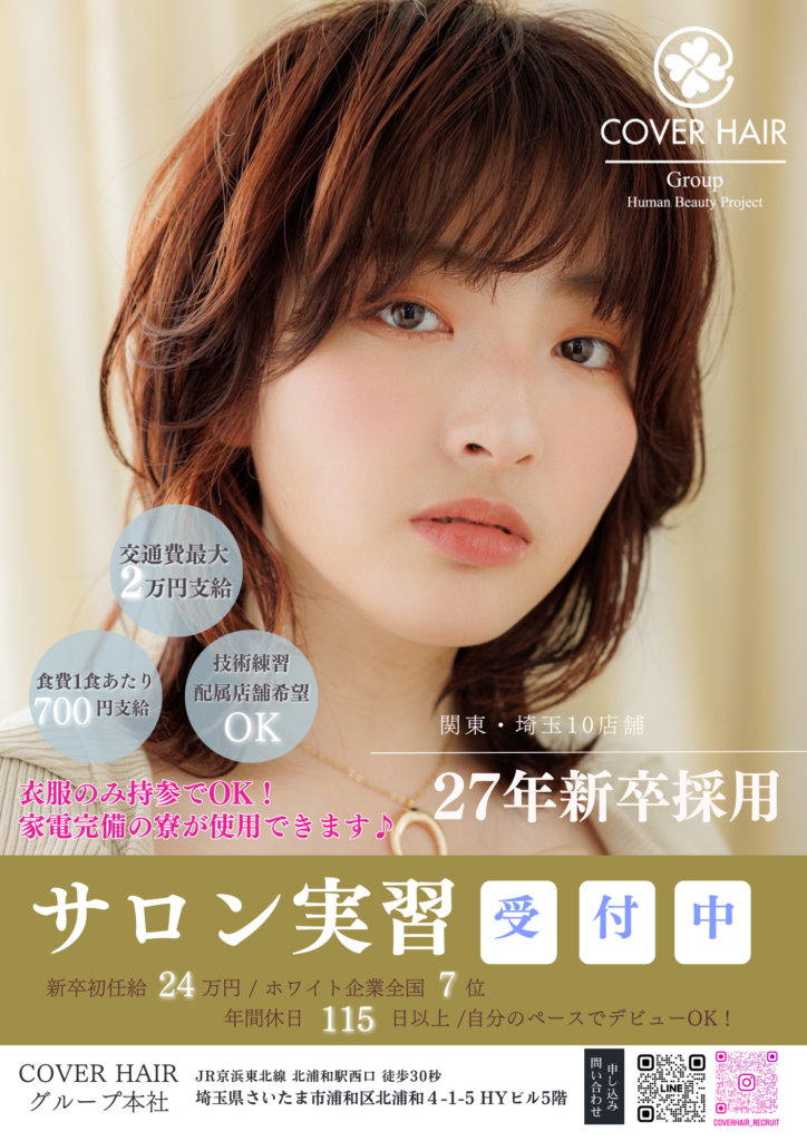 COVER HAIRグループでは現在美容学生さんのサロン実習受付中です♪