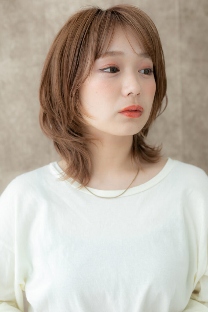 『デザインカラーウルフミディアムレイヤーカット』