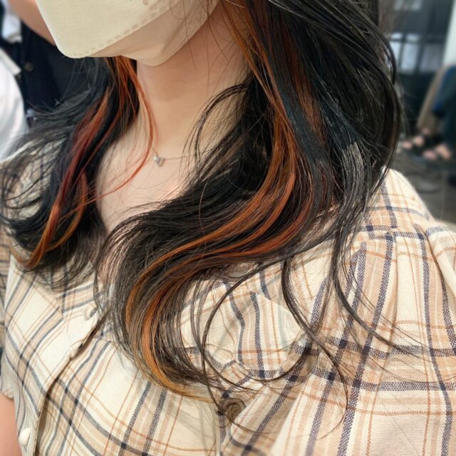 全頭にいれると派手になってしまうような色味でもインナーカラーのみに入れる事で派手になりすぎず、