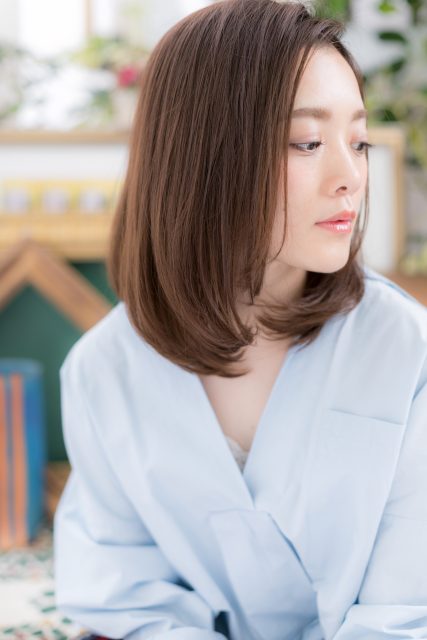 ②髪をのばしている最中や、肩にあたる長さの髪型の場合は、毛先が肩にふれて、はねやすくなります。