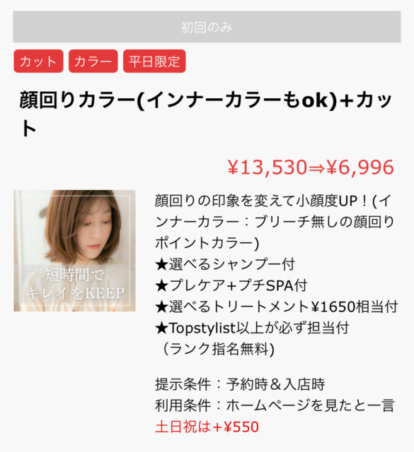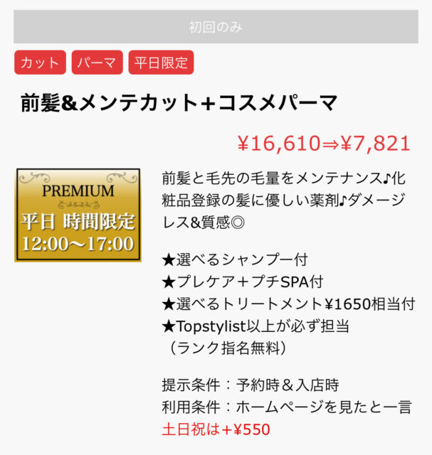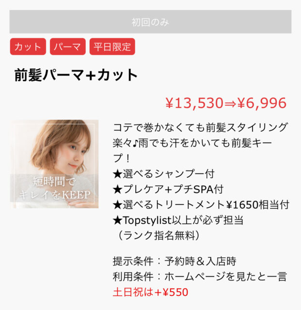 平日だからご利用いただける、限定クーポンを様々ご用意しております!!