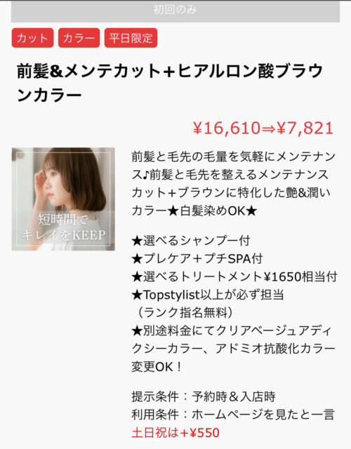 平日だからご利用いただける、限定クーポンを様々ご用意しております!!