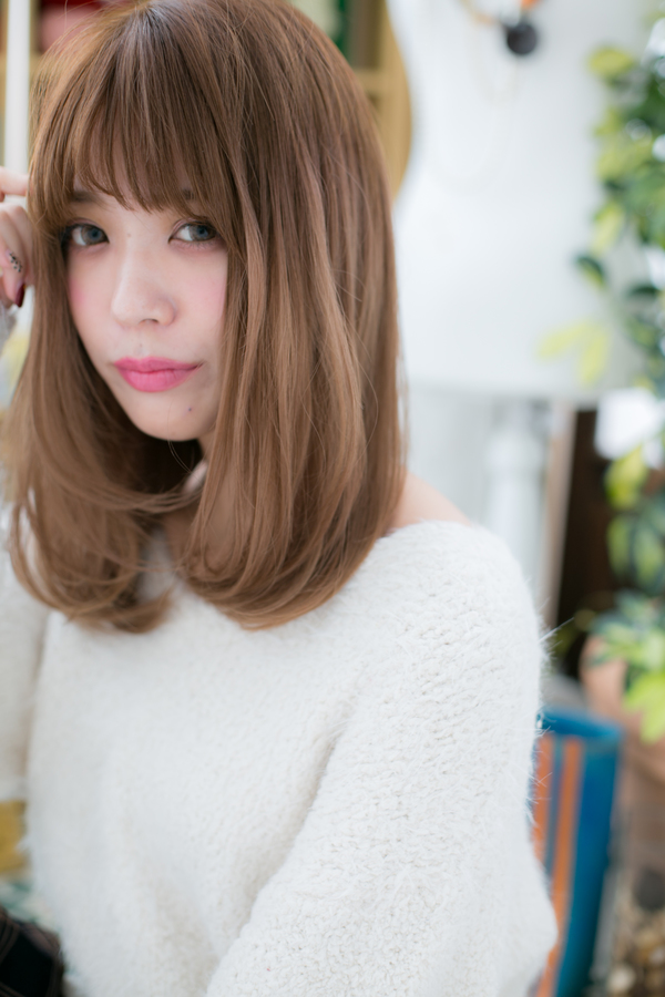 ハイトーンやグラデーションカラーがミディアムヘアを際立たせる♪ツヤ感ワンカールストレートでシンプルなスタイルを格上げ。斜めバングや厚めバングで目力UPしたり、個性的なジグザグバングも旬顔☆髪の毛の悩みも解決する人気のカラーやアッシュグレー、グレージュ、ブリーチなしもおすすめ!30代・40代にも◎(メイク担当:COVERHAIRGROUP 中田)