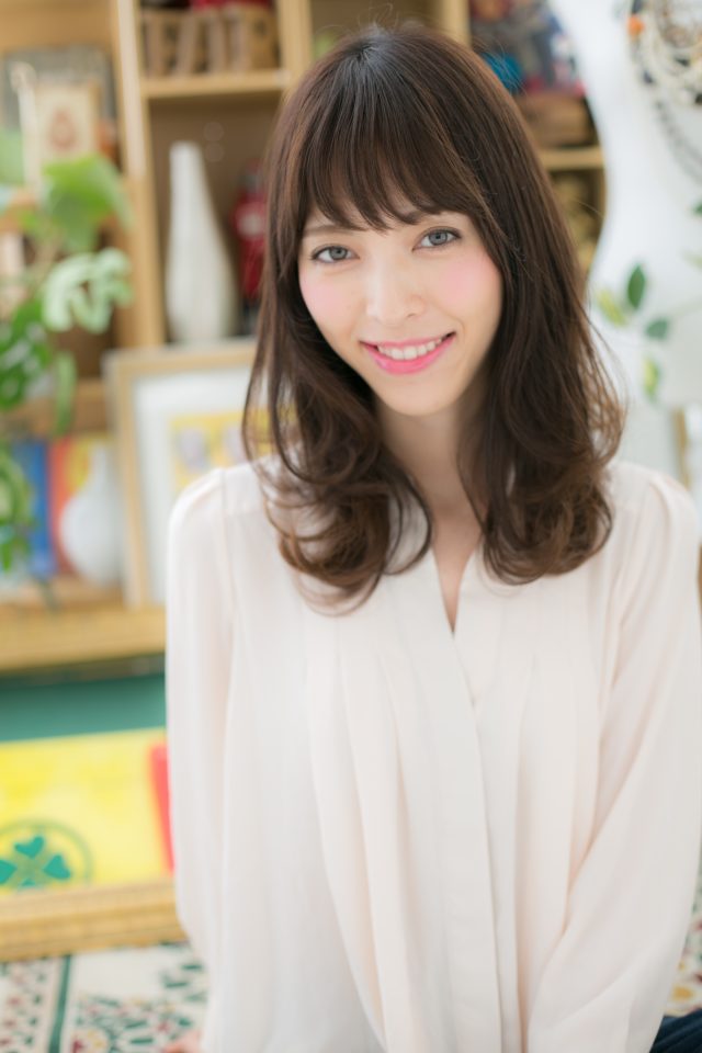斜めバングのくせ毛風MIXカール
