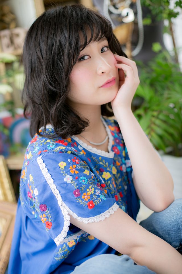 透け感あるフリンジバングと顔周りで揺らめくエアリーカールで軽やかに。黒髪でも重めスタイルにならず、知的ハンサムふわミディはオフィスウケもバッチリ!前下がりフォルムや耳かけも◎(メイク担当:北浦和店 近藤