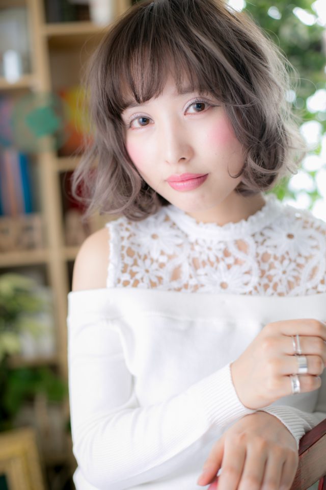 ナチュラルボブからイメチェンしたい方にオススメのスパイシーな大人ボブ。フリンジバングにくせ毛風カールをオン。無造作なラブふわミディは、グレージュやアッシュ系のハイトーンで周囲と差をつけて!耳かけしても◎