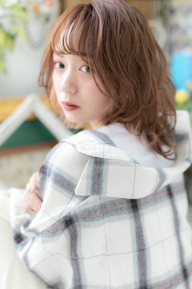 濡れ髪セミウェットウェーブでおフェロに仕上げたくせ毛風ふわミディ。耳かけアシンメトリーなヘアスタイルで大人女子のコーデを完成。ミディアムヘアを際立たせるグラデーションもおすすめ!(メイク担当:北浦和店 棟方)