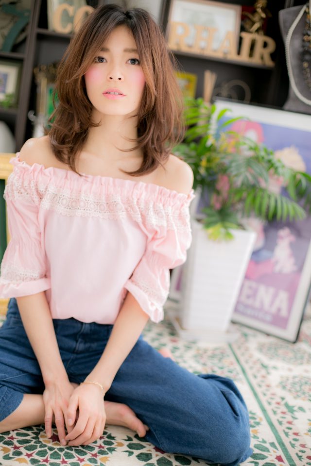 センターパートと前下がりのふんわりしたワンカールで、甘辛MIXなAラインの美人顔。小顔カットでアンニュイなふわミディに。ラフで無造作にかきあげたり、耳かけも大人かわいい。抜け感あるふわミディもトレンド。