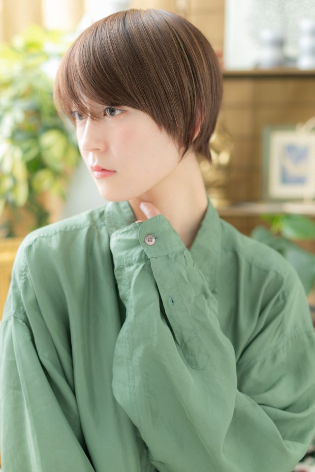 斜めバンググレージュカラー小顔ボブショート