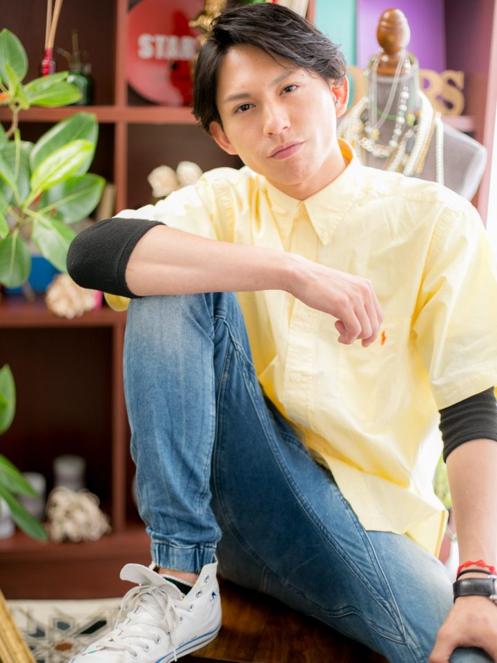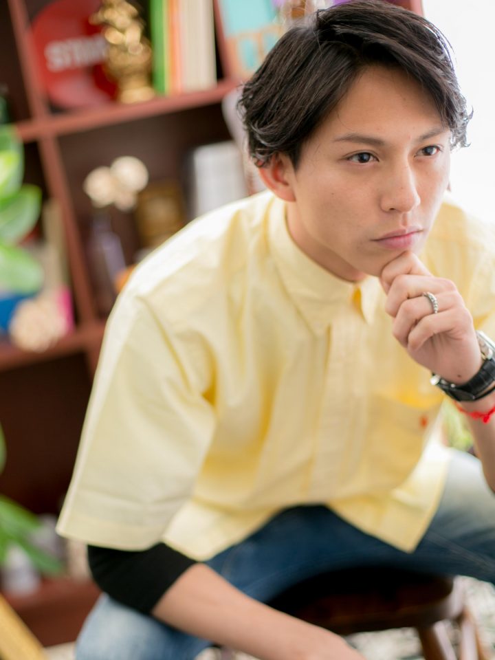 空気を入れるように自然にドライ。毛先に少しワックスで簡単にスタイリングOK。クセ毛の方はパーマなしできまります。