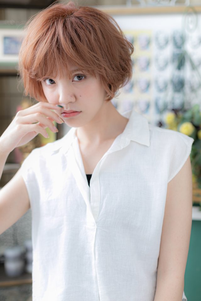くせ毛風ショートマッシュは斜めバングや厚めバングで目力UPしたり、シースルーバングや耳かけ前下がりも小顔で大人女子のコーデを完成!トリートメントしたようなカラーリングもおすすめ。30代・40代にも◎