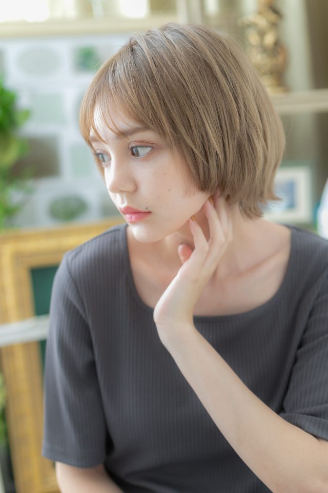 外国人風ミルクティアッシュ小顔ウルフボブ