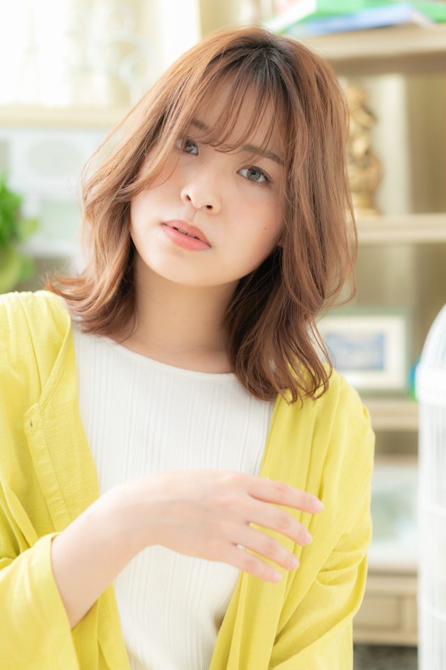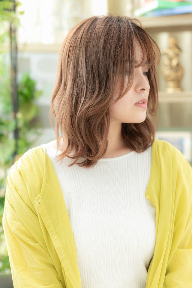 斜めバングや厚めバング、前下がりで小顔。ナチュラルボブやフェミニンボブ、大人ボブや前下がりボブ、ミニボブからの伸ばしかけに◎くせ毛風ゆるふわミディや耳かけウルフも大人かわいい。(メイク担当:北浦和店 棟方)