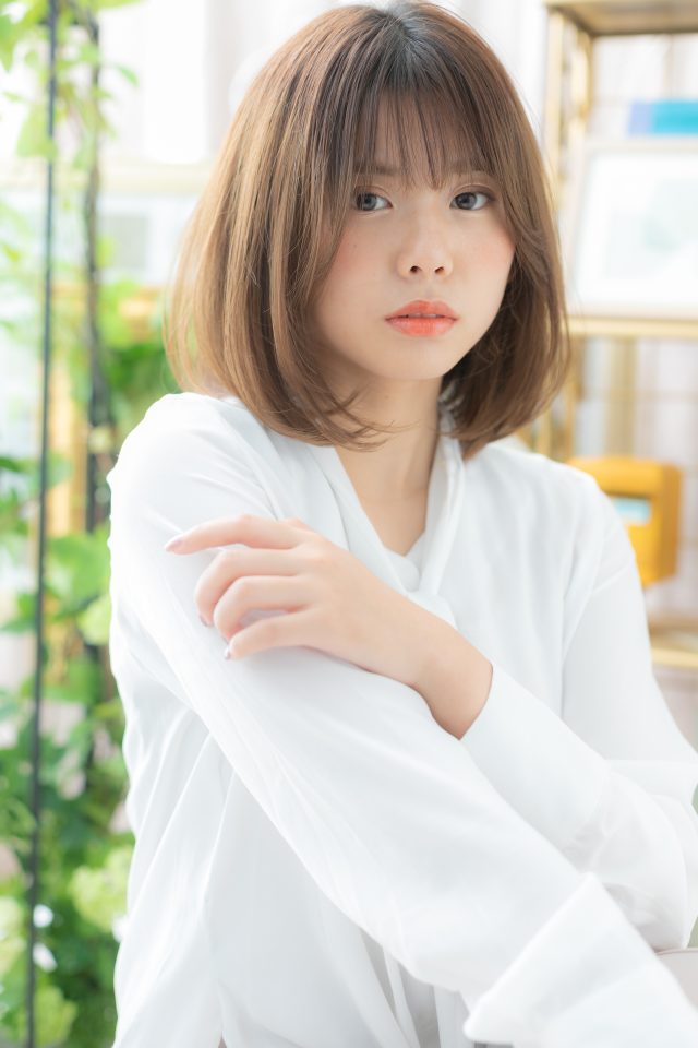 - ハイトーンカラー/切りっぱなしボブ/大人ハイライト/韓国風/ボブ/ウェットヘア/ナチュラルマッシュショート/丸みショート/オリーブアッシュ/くすみカラー/かきあげ前髪/くびれショート/エアリーミディ/ナチュラル/20代/30代/40代