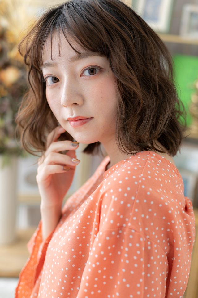 ナチュラルボブフェミニンボブ、大人ボブ前下がりボブも人気。くせ毛風ゆるふわミディや前下がり耳かけウルフで小顔。斜めバング厚めバング、シースルーバングかきあげ前髪も大人かわいい。(メイク担当:川口店岩淵)