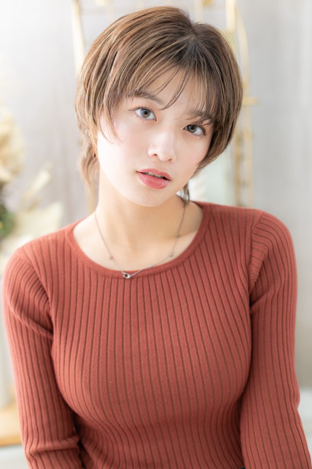 バレイヤージュ/ハイトーンカラー/切りっぱなしボブ/ナチュラルボブ/大人ボブ/前下がりボブ/ウェットヘア/ウルフ/ナチュラルマッシュショート/ショートマッシュ/丸みショート/くびれショート/耳かけ/ナチュラル/20代/30代/40代