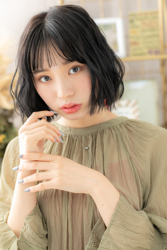 ナチュラルボブフェミニンボブ、切りっぱなしボブマッシュボブ、ミニボブからイメチェンに◎斜めバング厚めバング、かきあげ前髪シースルーバングで小顔。くせ毛風ゆるふわミディや耳かけ前下がりウルフも大人かわいい。