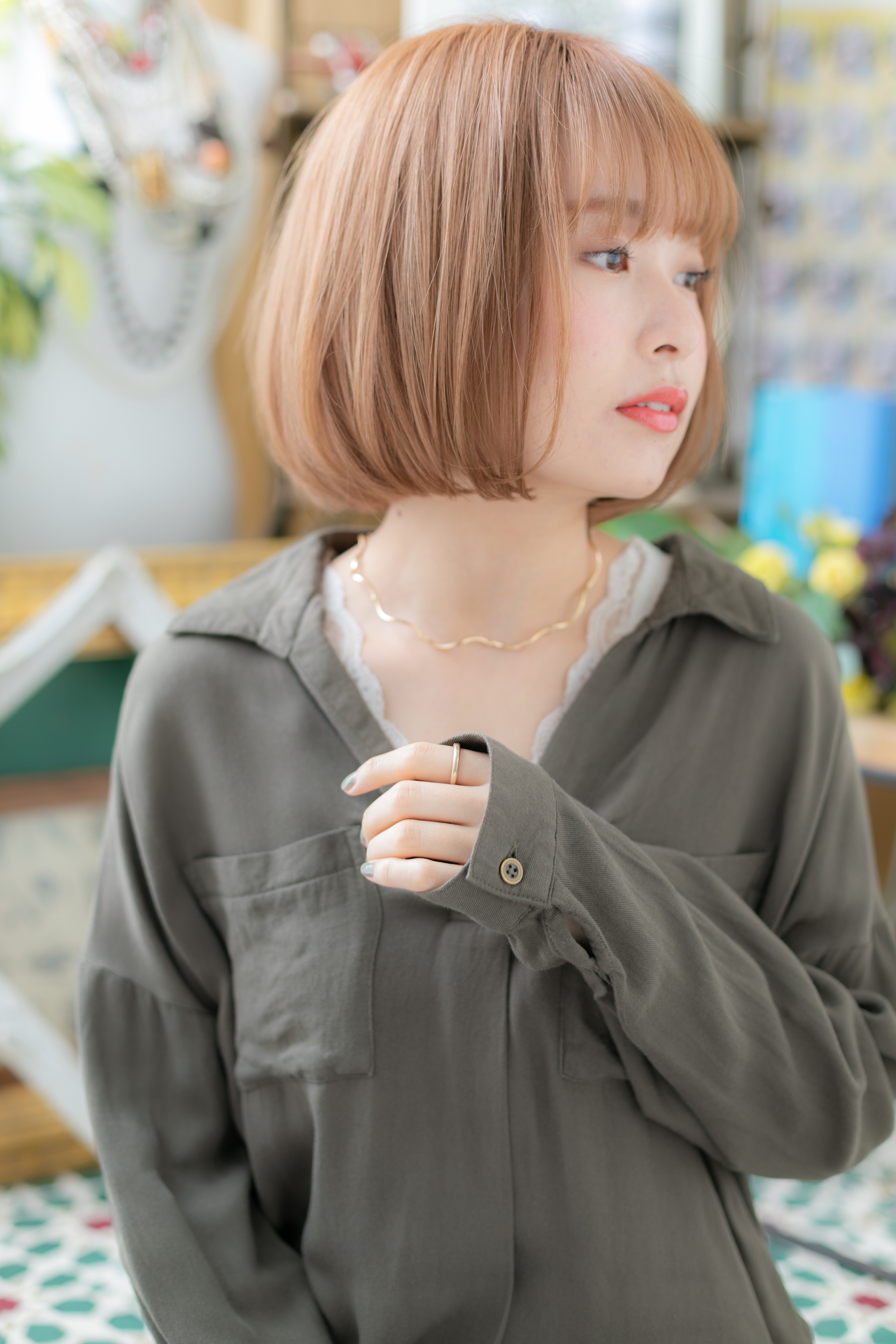 かきあげ前髪/前髪パーマ/斜めバング/シースルーバング/インナーカラー/バレイヤージュ/ミルクティーアッシュ/韓国風/ボブ/ウェットヘア/前下がり/アッシュオリーブ/カーキベージュ/シルキーベージュ/ナチュラル/20代/30代/40代