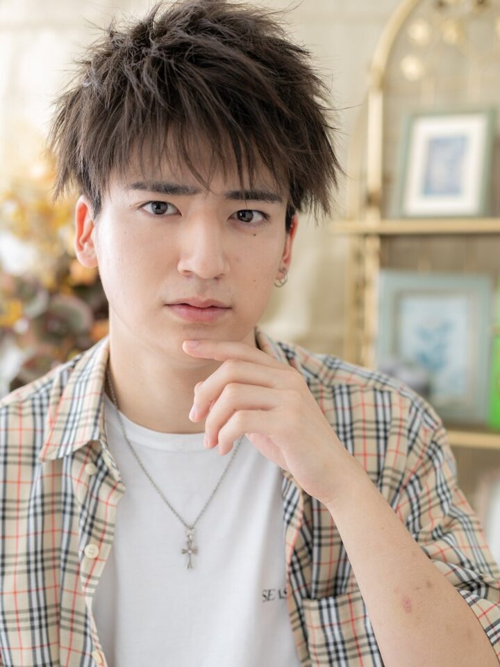 ニュアンスパーマのくせ毛ショート。オリーブベージュやアッシュオリーブ、ハイトーンカラーで外国人風に。ツーブロック刈り上げで毛量調節して小顔見せ。クラウドマッシュやウルフショート、韓国へアーも人気。