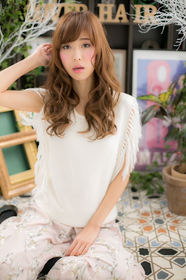 まるでお人形さんみたい☆厚めバングと外国人のようなボリューミーカールに目を奪われちゃうドーリーロング。女の子なら一度はやってみたい憧れスタイルですよね♪バングの長さを変えれば個性も光ります☆