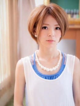 前髪が長めなので、分け目で印象が変わる、アレンジしやすいナチュラルクールなスタイル。日差しに映えるハイトーンカラーで涼しげに♪