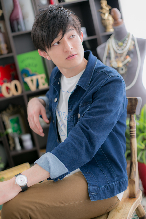 前髪は目にかかるくらい長さがあるので、トップをふんわりドライ後、流しやすい方へセット。固めのワックスでスタイリング。