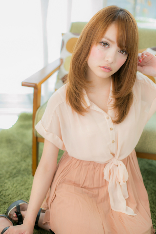 明るいハイトーンのカラーに、上品さと可愛さが絶妙なミディアムヘアーでスウィートな女の子らしさを!根元から中間はストレートでツヤ感を出して、毛先には内側にワンカールのナチュラルなスタイル。