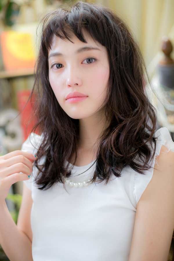 ダークトーンカラーでエキゾチックな印象のセミディスタイルです。根元から大きく出した緩やかウェーブでエアリー感も☆