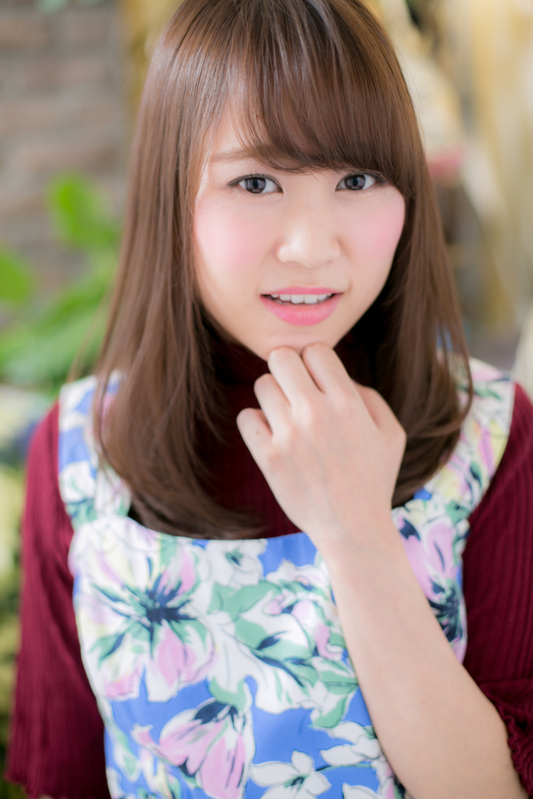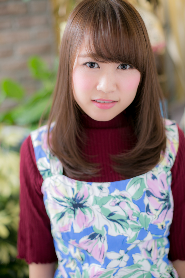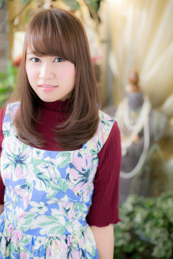 ツヤサラ感あるシースルーバングとナチュラルで自然なワンカール☆カラーはヌーディーテイストが可愛い小顔ストレート。