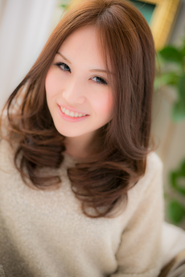 センターパートと毛先の大きなカールが印象的な愛されスタイルは、オフィスもプライベートもOKな、オールラウンドなスタイル!