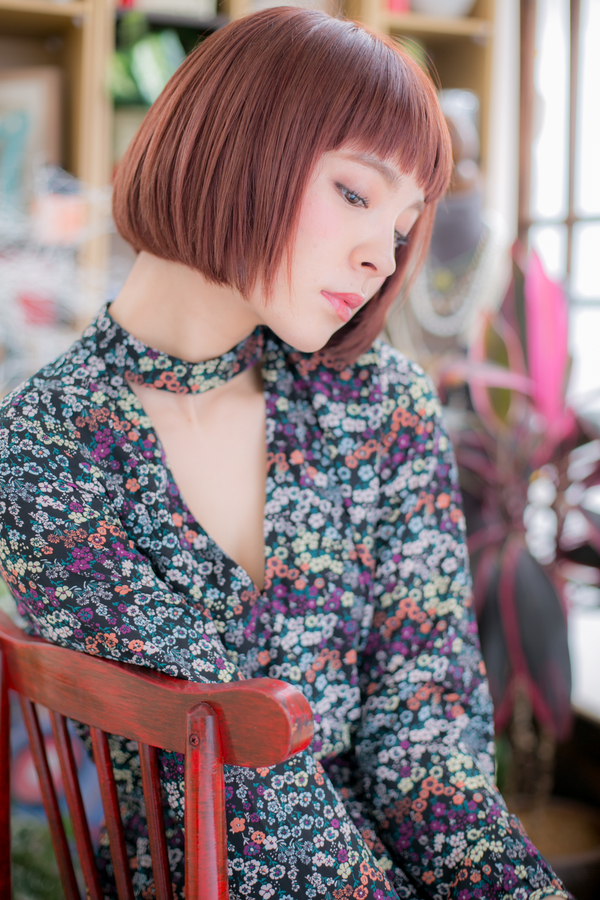 ナチュラルなボブスタイルに短めの前髪とアクセントの効いたレッドブラウン系のカラーでオシャレで個性のある素敵なボブスタイルに☆カラーのトーンや色味でオフィスにも似合うスタイルにも♪