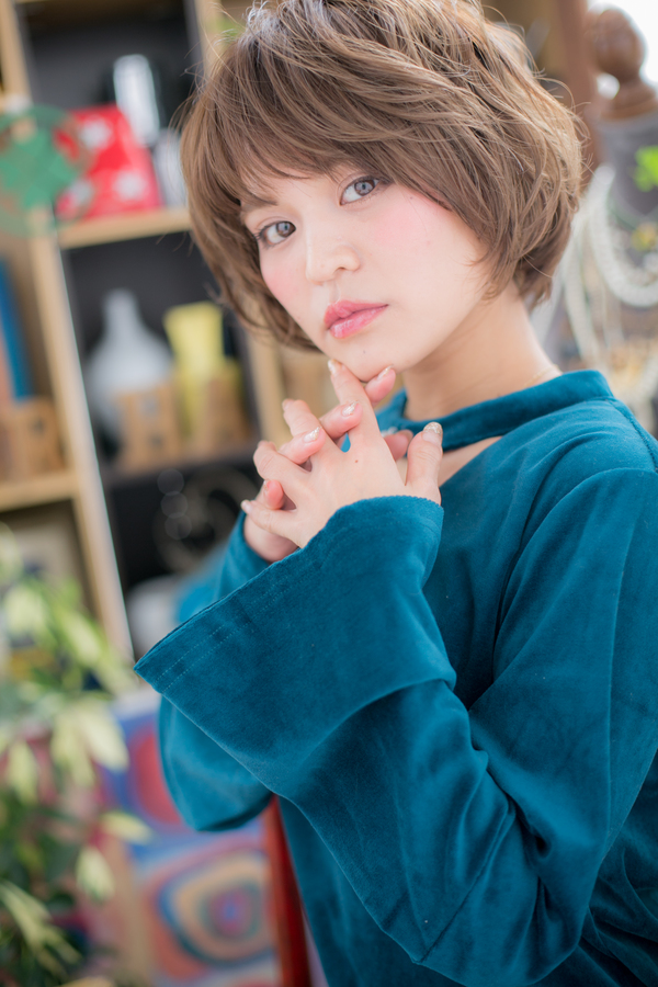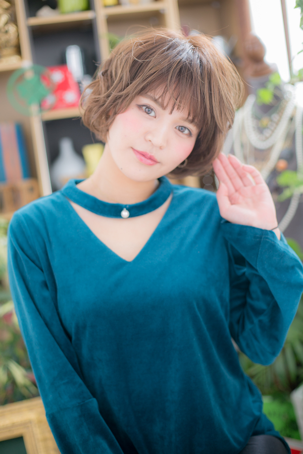 透明感あふれるアッシュカラーと、ナチュラルなウェーブ感がマッチしたウェーブボブスタイルです。ストレートではだせないカジュアルでフェミニンな印象に。