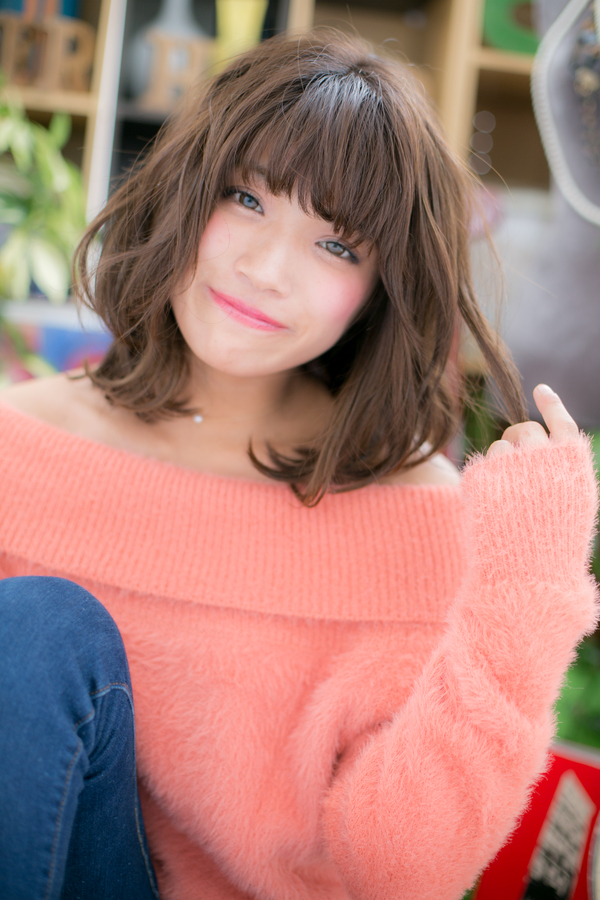 重めスタイルに合わせた空気感あるエアリーカールがキュート。重軽ミックスのふわミディは、ノームコアなスタイルからイメチェンしたい方や、マッシュやナチュラルボブからの伸ばしかけの方にもピッタリ。耳かけも◎