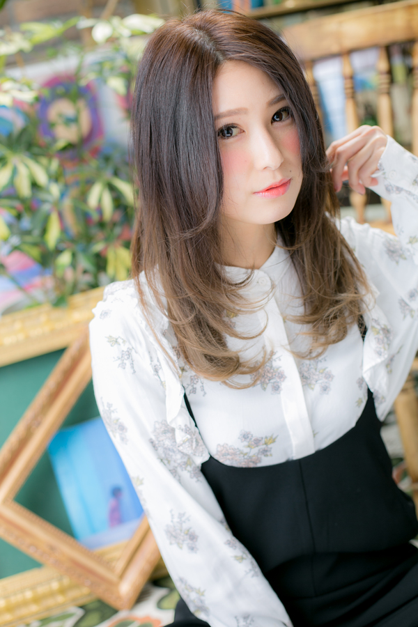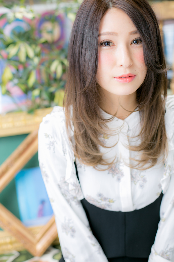 顔周りを包み込むサイドの毛流れで輪郭をカバー。頬をスッキリと小顔に見せます。肩下で揺らめくグラデーションカラーとレイヤーで、内巻きワンカールもグラマラスに!