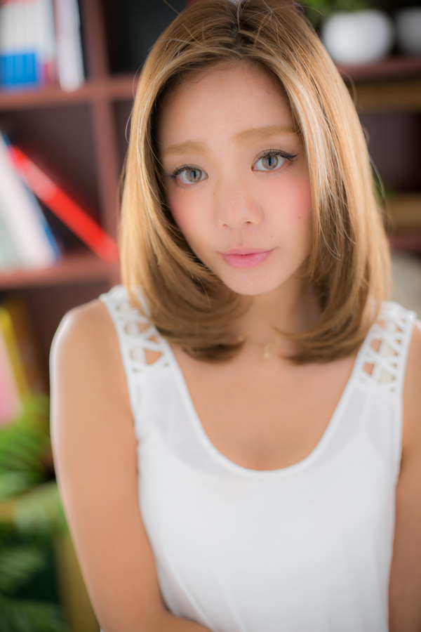 毛先にまとまる位の厚みを残しつつ、パーマやデジタルパーマでコロンと内巻きになるカールをつけたリッチ感もプラスのグラマラスなスタイルです。小顔や女の子っぽさをだしたい方は、前髪を厚めバングでつくるとGOOD!ヌーディカラーやベージュカラーで♪