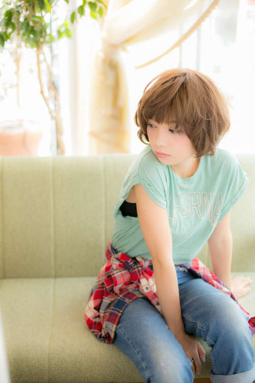 厚めバングで目の上ギリギリの前髪が小顔効果を叶えてくれる,ヌケ感が可愛いウェービーボブ。柔らかいラフな質感が決め手で適度なボリュームがフェミニンさも。