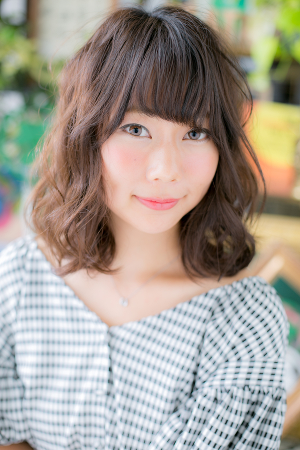 目の上ギリギリの厚めバング&斜めバングで目力強調のヘアスタイルに!サイドの毛流れで小顔に見えるようパーマでヘアアレンジ。クラシカルな黒髪やマーメイドアッシュで落ち着いた印象に。また髪の毛の悩みも解消する人気カラーもおすすめ!耳かけ&ふわミディでモテスタイルに♪(メイク担当:北浦和店 近藤)