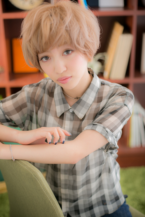 ふんわりしたカールがとってもガーリーなショートスタイル。ハイトーンカラーが,髪を柔らかく見せ,スィートに。ゆるーいカールなのでふんわりくせ毛風にスタイリングでOK!直毛でぺたっとする方やボリュームを出したい方にもオススメです☆