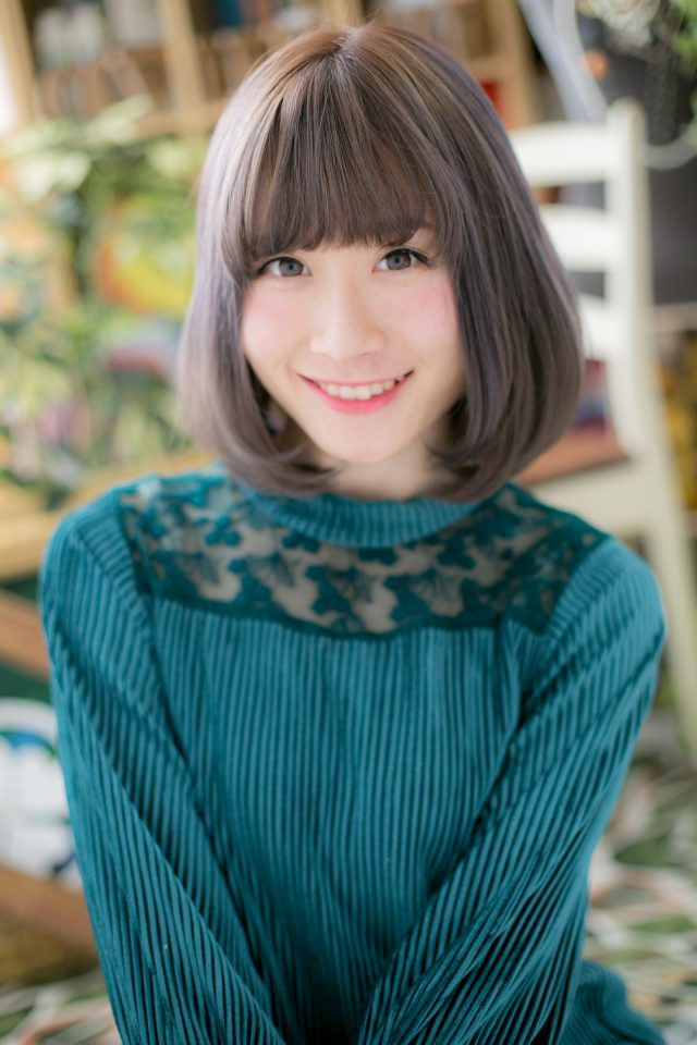 寝起きみたいなくせ毛風のくしゃっと感がかわいい前下がりボブのヘアスタイルです。個性的なショートバングの他、斜めバングや厚めバングを合わせたフェミニンボブや大人ボブも大人かわいコーデで大人女子UP。耳かけもCUTEでヘアアレンジ◎ミディアムヘアを際立たせるグラデーションで髪の毛の悩みも解消!人気のカラーもおすすめ!(メイク担当:川口店 成田)