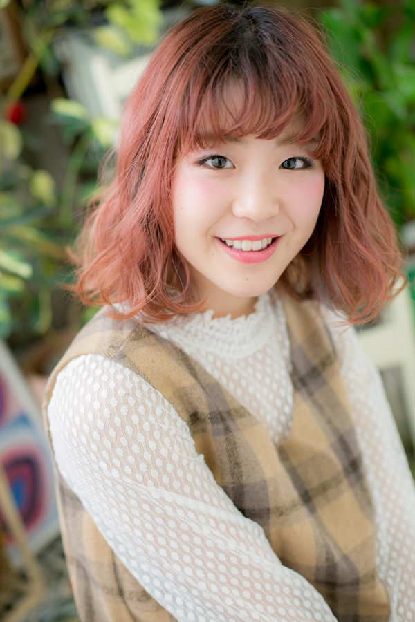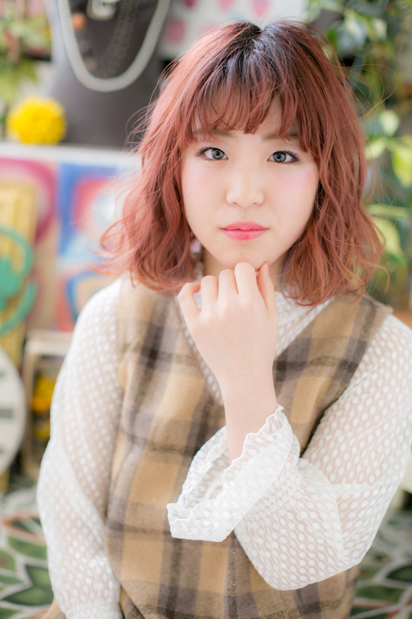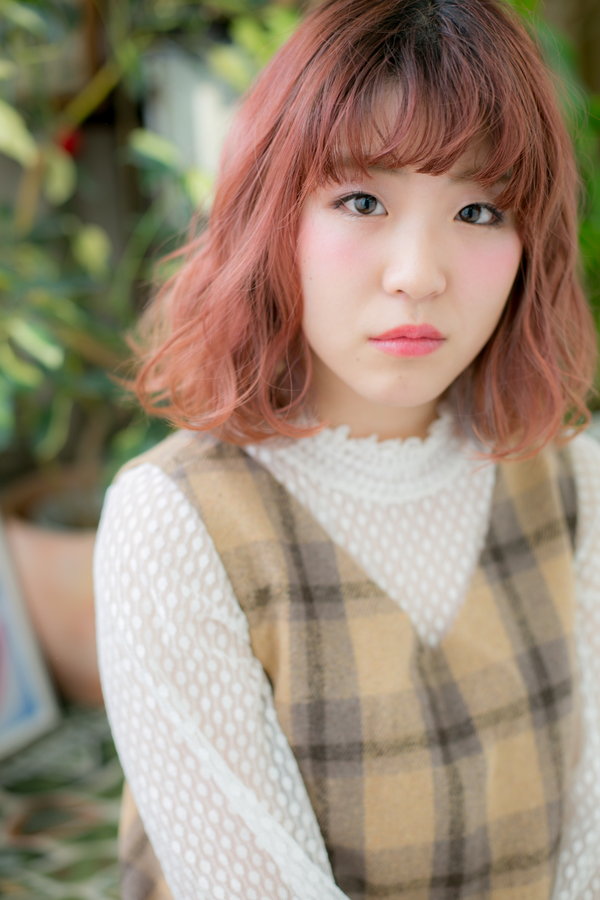 レッド系・ピンク系カラーで思いっきりガーリーに仕上げたフェミニンボブヘアスタイル。個性的で大人かわいい前下がりボブに視線集中!大人女子のファション度UP。ナチュラルボブやクールな大人ボブからのヘアアレンジにもGOOD!ミディアムヘアを際立たせるグラデーションで髪の毛の悩みも解決する人気のカラーもおすすめ!30代・40代や面長の方にも◎(メイク担当:川口店 成田)