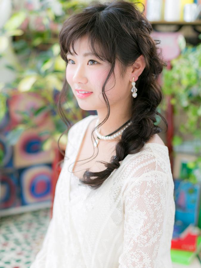 ゆるふわヘアアレンジが大人かわいいお呼ばれスタイル。斜めバングや厚めバングで目力UP!大人女子のコーデを完成!おくれ毛で輪郭カバーして小顔に♪フェミニンにもグラマラスにもヘアアレンジOKです。30代・40にもおすすめ☆(メイク担当:北浦和店 棟方)