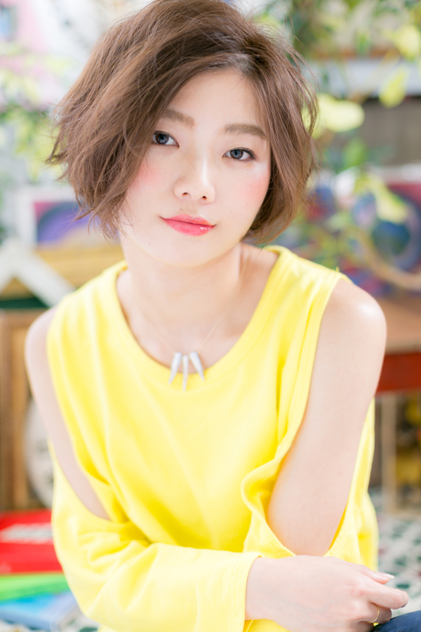 動きのあるショートでピュアで元気なヘアスタイル。長めバングで大人っぽく雰囲気で大人女子のコーデを完成。前下がりで小顔対策も◎ハネ感も生かしつつワックスを手にもみこみ、根元からつけるだけの簡単スタイリング。トリートメントしたようなカラーリングで髪の毛の悩みも解決!人気のカラーやアッシュグレー、ブリーチなしもおすすめ!30代・40代にも◎(メイク担当:川口店 成田)