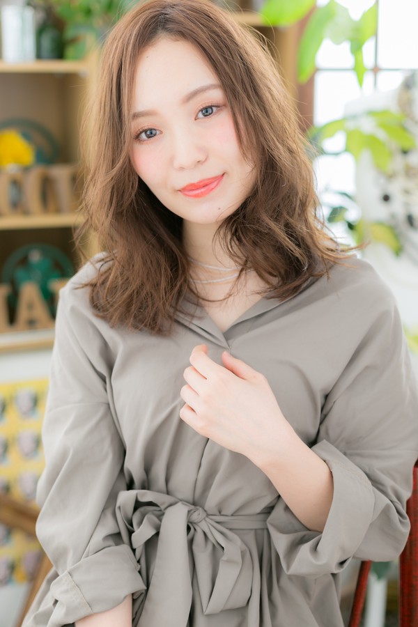 エアリーな雰囲気がフェミニンなふわミディ。ナチュラルボブやフェミニンボブ、大人ボブや前下がりボブからの伸ばしかけにオススメ。ベージュカラーやグラデーションカラーで立体感を出したり、旬のグレージュもグラマラス。