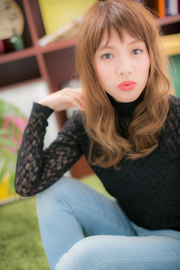 鎖骨ラインの軽やかなふわカールに、個性的な短めバングをプラスすることで、大人カワイイ、コケティッシュスタイルの完成♪余裕を感じさせる無造作感が、海外セレブ風の雰囲気を演出します。斜めバングや厚めバングで、ぐっと印象を変えてもGOOD!