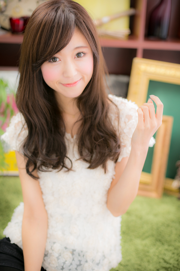 美肌感引き出す透明感あるカラーと,毛先にかかったカールがフェミニンなロングスタイル。斜めバングで小顔効果も★伸ばしかけの方や簡単スタイリングが好きな方にオススメの,大人かわいいスタイル。グラデーションカラーやモード,アシンメトリーなどもご相談ください♪