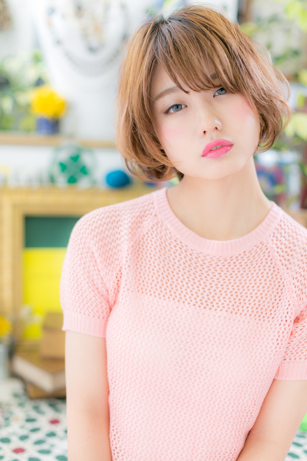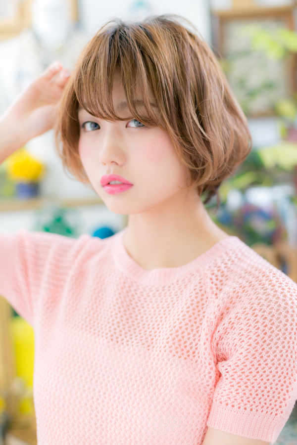 くせ毛風カールの小顔ナチュラルボブのヘアスタイル。毛束ごとに空気感が生まれ、可愛らしいふんわりフェミニンボブで大人女子にオススメ。オイルバターなどをもみこむだけで完成の簡単スタイリングでヘアアレンジもしやすい。からーはアッシュグレーやグレージュ、ブリーチなしもおすすめ!30代・40代にも◎(メイク担当:川口店 成田)